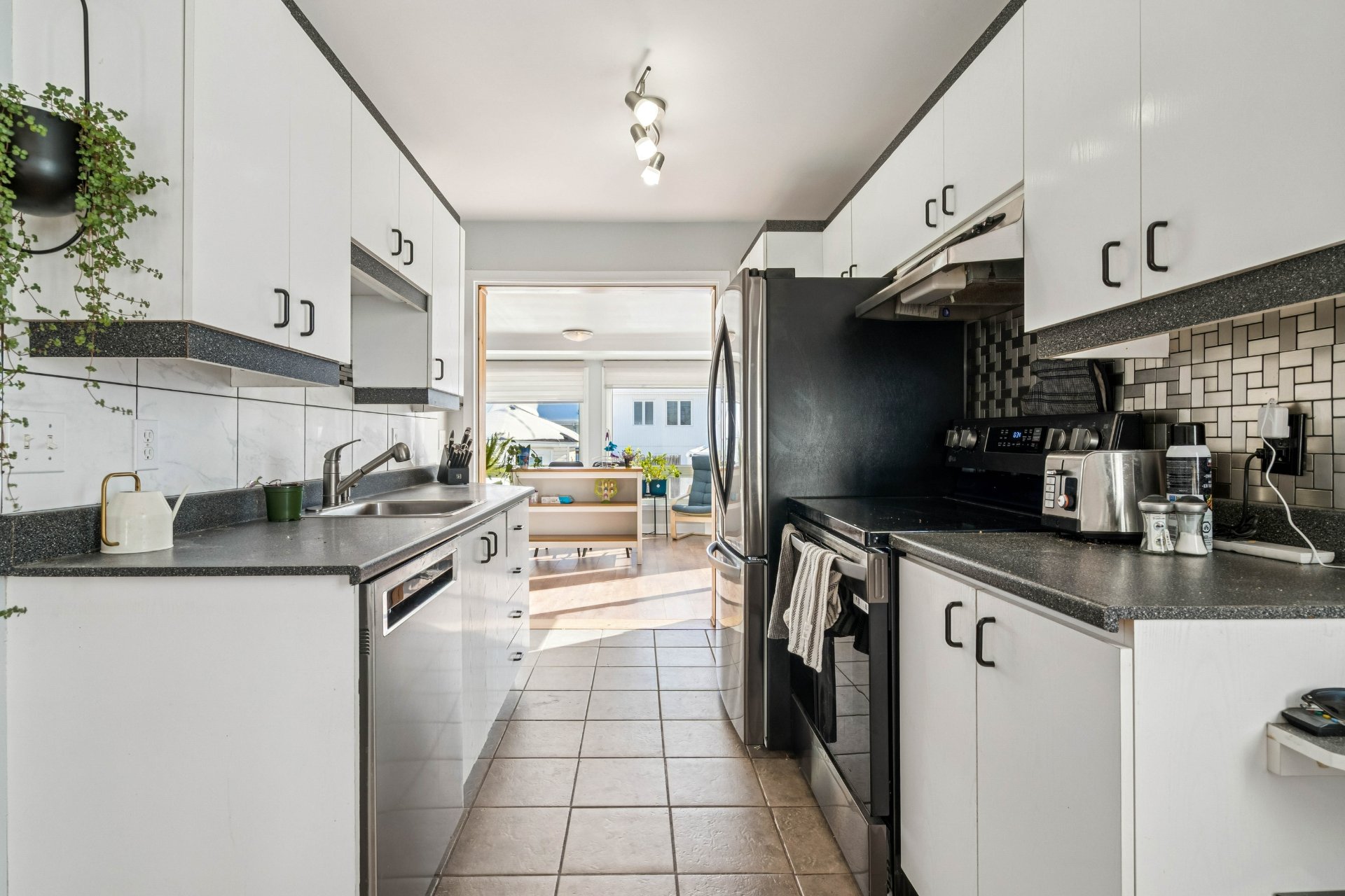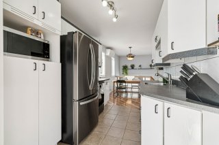 Charming single-story semi-detached home located in a quiet, family-friendly neighborhood. Featuring an open-concept living area, two bedrooms on the main floor, and a third bedroom in the finished basement with exterior access and a workshop. Enjoy the bright sunroom and a fenced yard with a heated in-ground pool, perfect for summer. Close to services, public transportation, and quick highway access. A great opportunity not to be missed! See ADDENDUM.